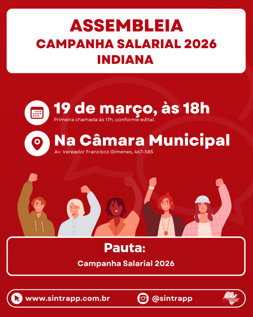 🚨 Sintrapp convoca servidoras e servidores de Indiana para assembleia de Campanha Salarial 2026!