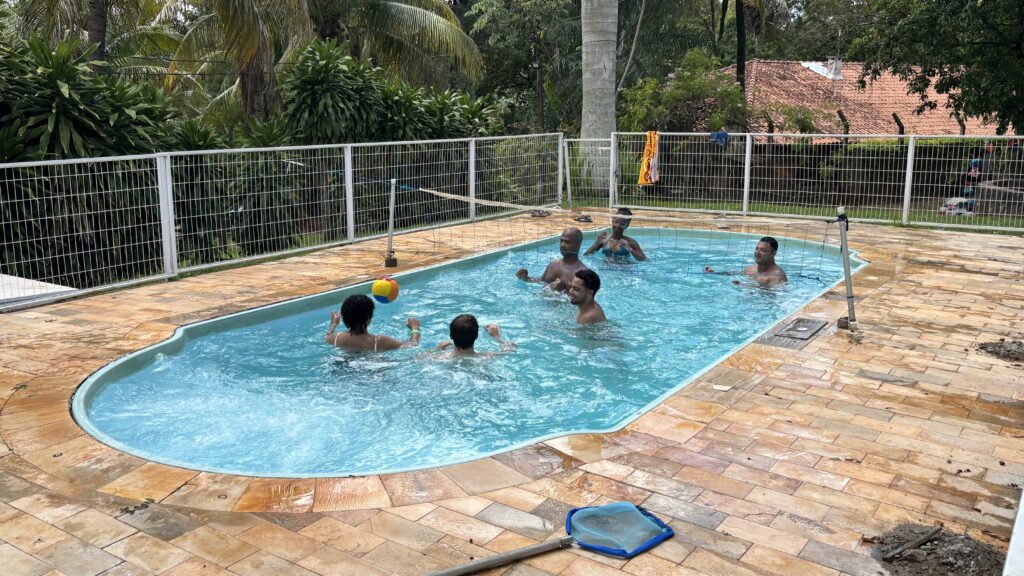 Somado a isso, a estrutura da área de lazer foi amplamente aproveitada, com a tradicional piscina do parque aquático, os quiosques e as quadras de futebol e vôlei de areia, fortalecendo o espírito de confraternização entre trabalhadoras e trabalhadores.