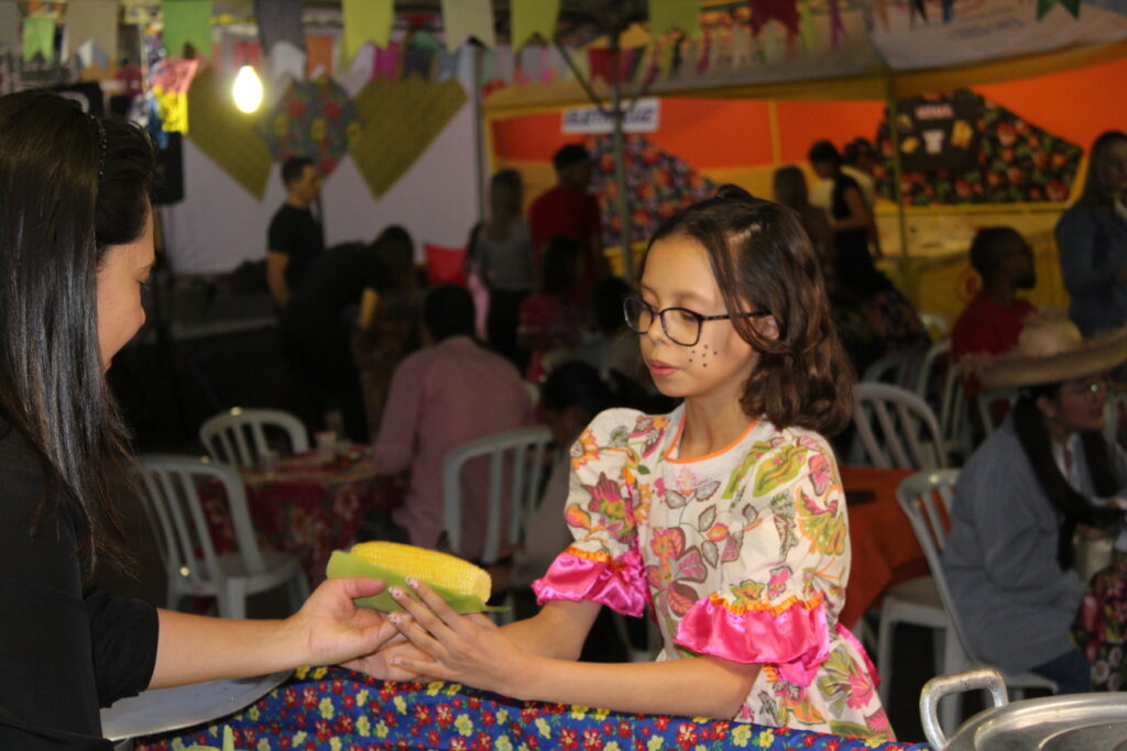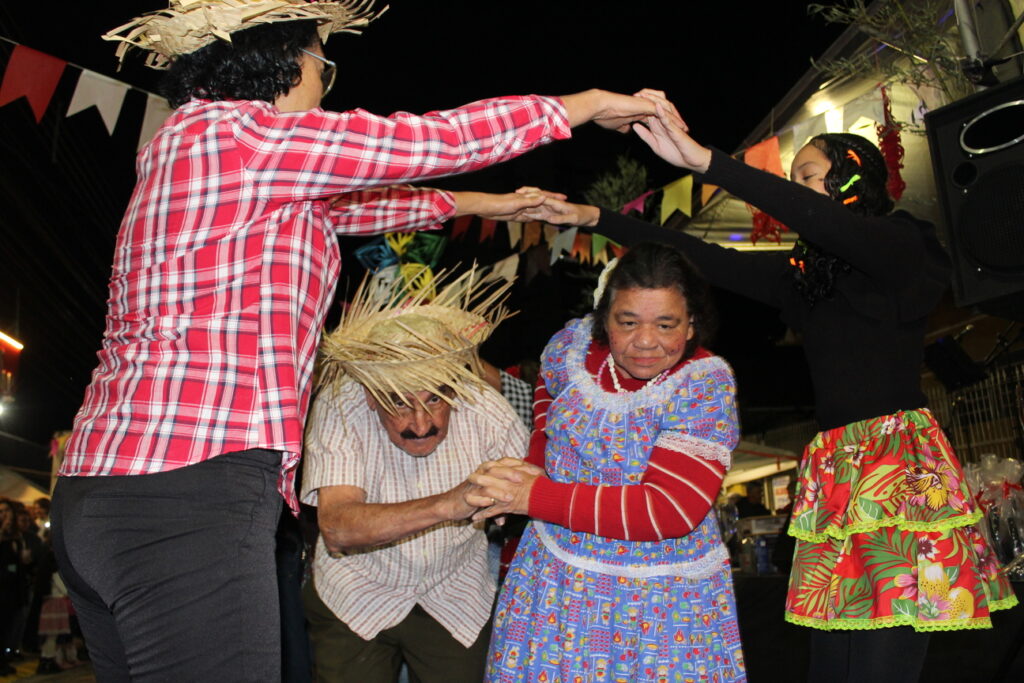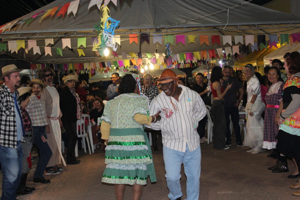 Logo após a cerimônia, a festa tomou conta da Rua Siqueira Campos, que foi decorada com bandeirinhas, balões, luzes e barracas temáticas. O cheiro de quentão, algodão doce, pipoca e canjica, que foram servidos gratuitamente, espalhou-se pelas redondezas, convidando servidoras, servidores, familiares e a comunidade a se juntarem à celebração. Além destas, houve também venda de caldo de mandioca, milho verde cozido, cachorro-quente, pastel, espetinho, produtos agroecológicos, cama elástica e escorregador para as crianças. Tudo isso, animado pelo som do Grupo Jandaia.