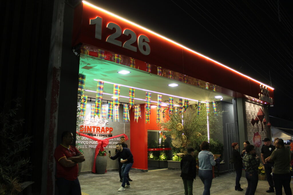No início da festança, a presidenta do Sintrapp, Luciana Telles, acompanhada da diretoria da entidade, realizou uma breve fala de saudação. Em seu discurso, destacou que a nova fachada representa mais do que uma obra estética: “É a nova porta de entrada da nossa luta. Um símbolo da força e da presença do sindicato na vida das servidoras e dos servidores.” Na sequência foi desatado o laço que, de forma simbólica, inaugurou o espaço. A nova fachada, moderna e acolhedora, deu “outra cara” ao prédio da entidade.